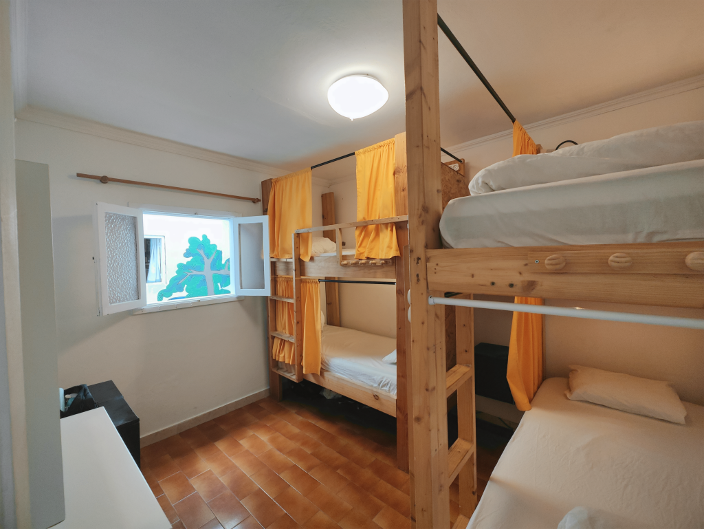 Tropical es nuestro dormitorio femenino de 4 camas, pero también puedes reservarlo como habitación privada.